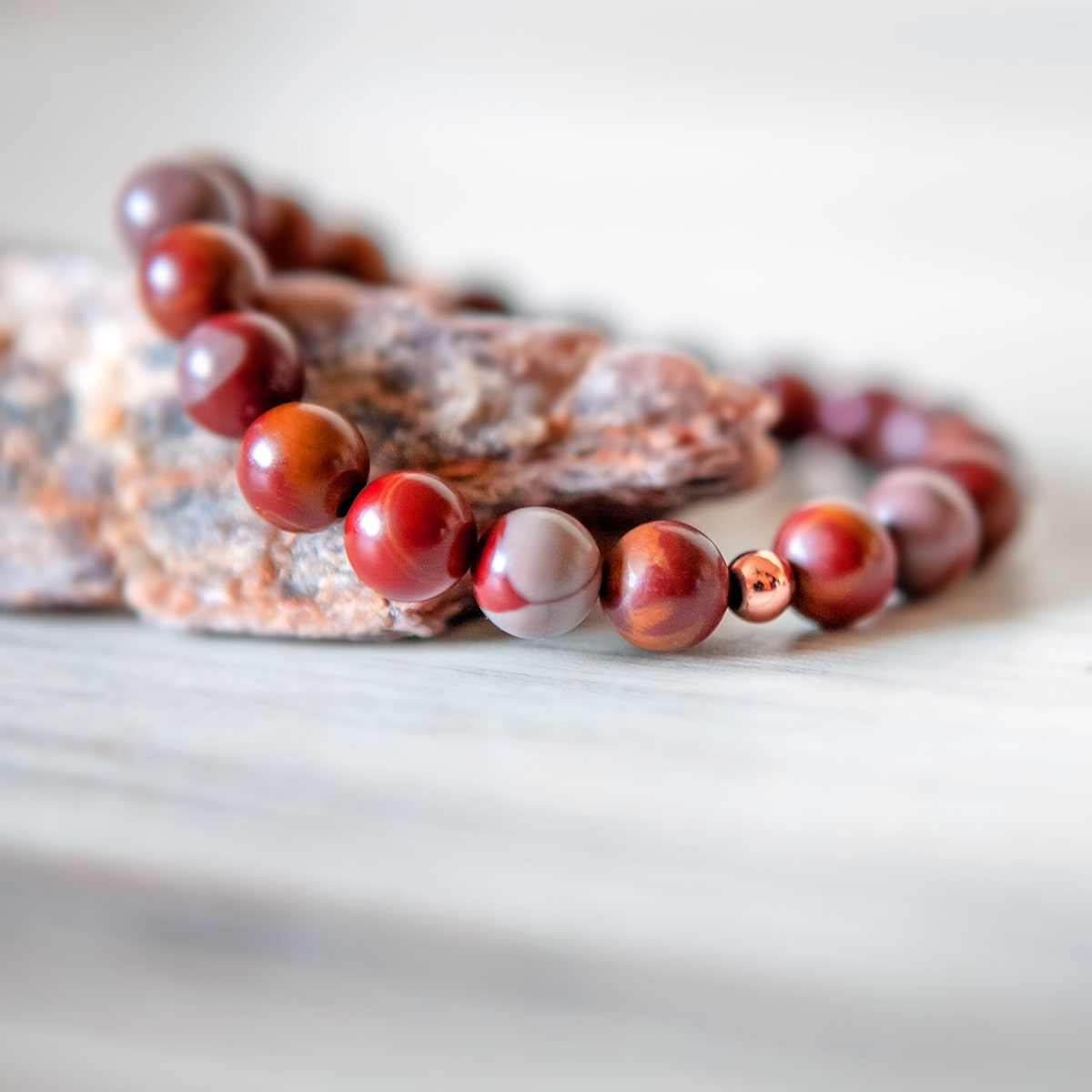 Nareena Jasper represents nurturing energy, emotional healing, and connection to the Earth, promoting tranquility and inner peace. Rose gold represents love, compassion, and beauty.